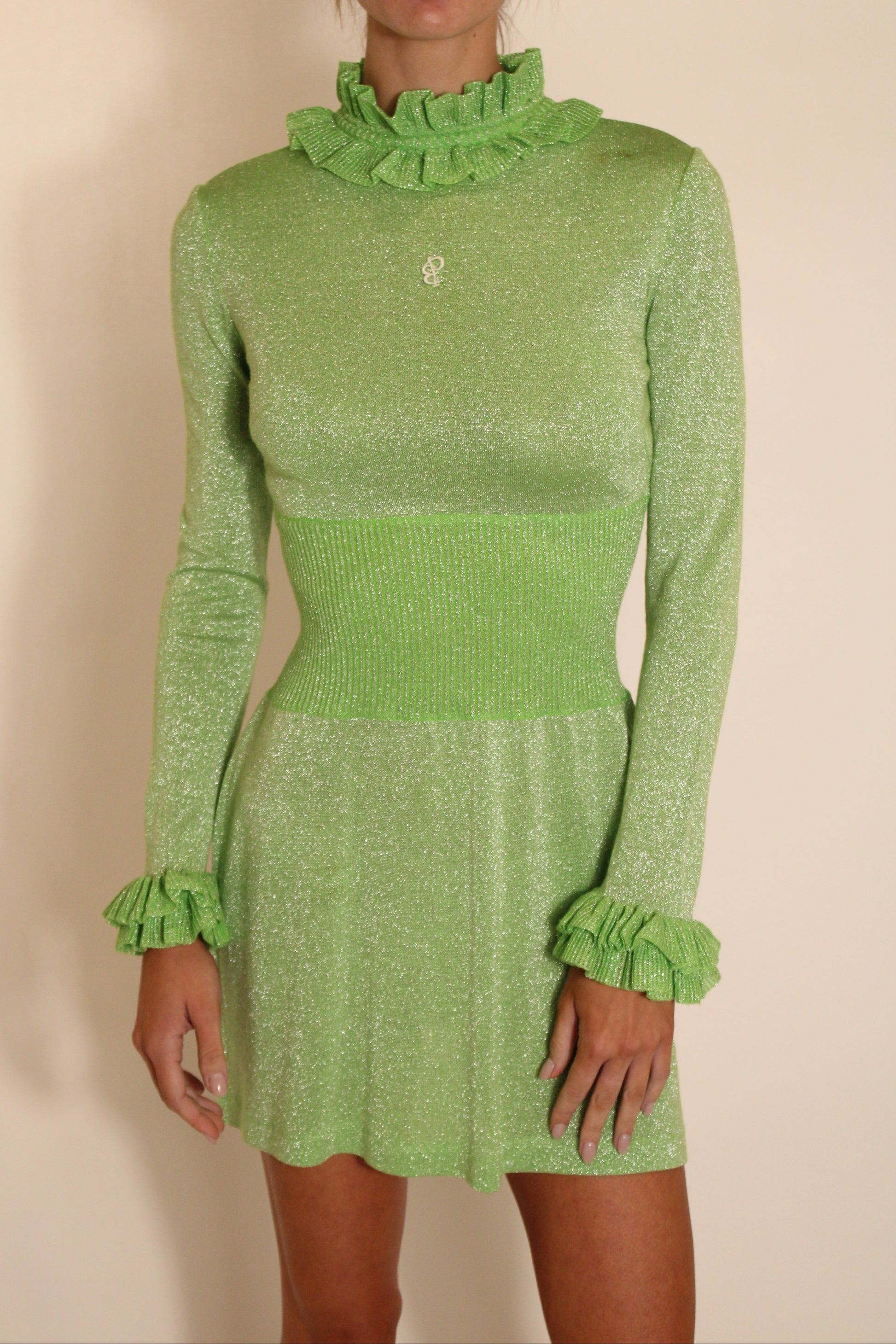 Pucci Green Sparkly Long Sleeve Mini Dress