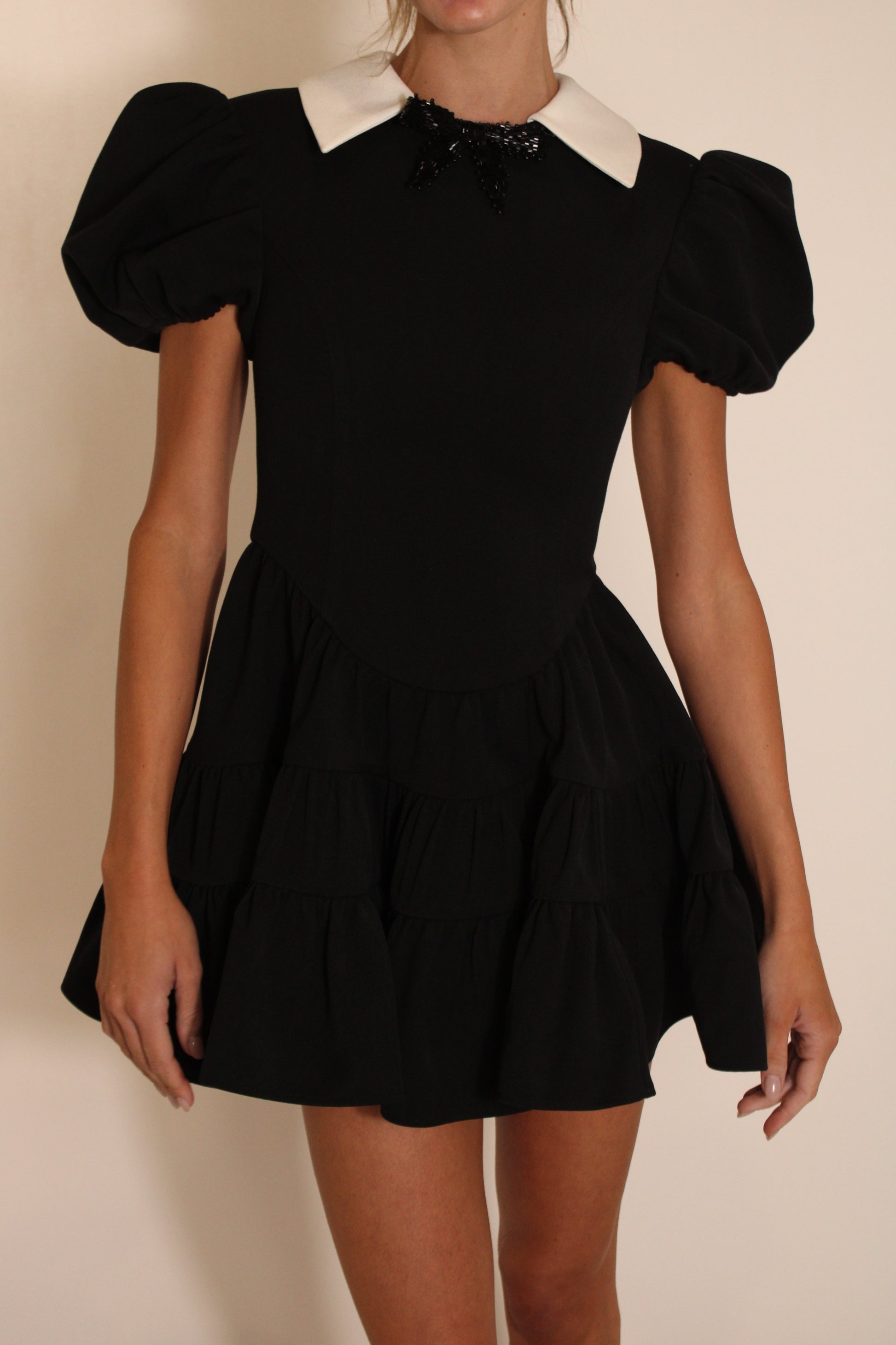 ShuShu Tong Black Mini Dress With White Collar & Bedazzled Bow