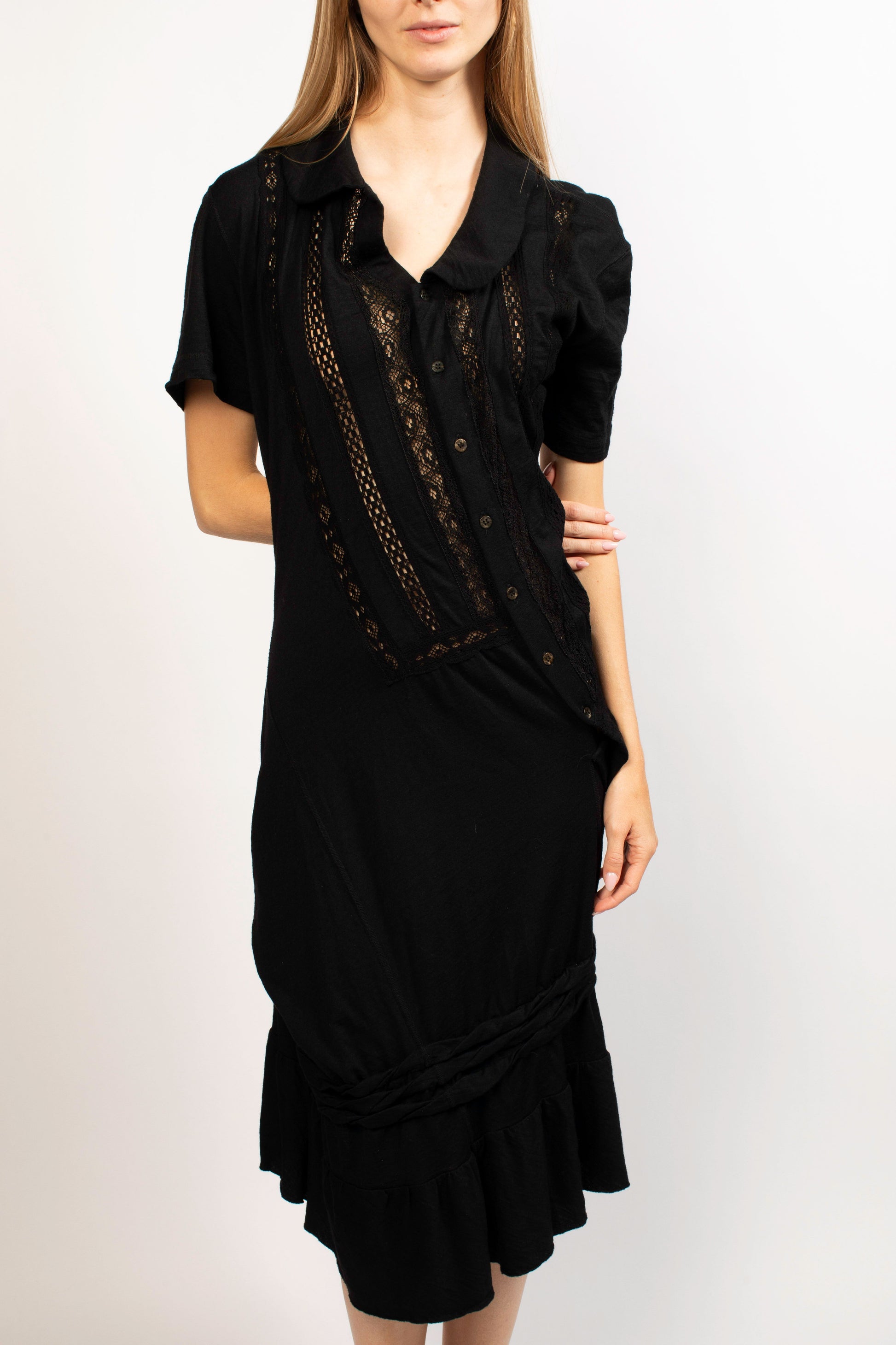 Junya Watanabe Black Crochet Midi Dress With Collar